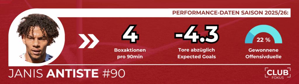 Zu Beginn wurde Antiste in Österreich noch für seine Laufbereitschaft, sein Spielverständnis und sein Gespür für Räume gelobt. Mit den ausbleibenden Ergebnissen der Wiener mehrte sich jedoch die Kritik. Besonders seine beim FCN noch so ausgeprägte Kaltschnäuzigkeit lässt er vermissen: Laut Expected Goals hätte er mindestens vier Treffer mehr erzielen müssen – in der Bundesliga vergaben nur vier Spieler mehr Großchancen. Darüber hinaus gelingt dem Offensivmann, der zeitweise auch auf der Zehn eingesetzt wird, zuletzt immer weniger.