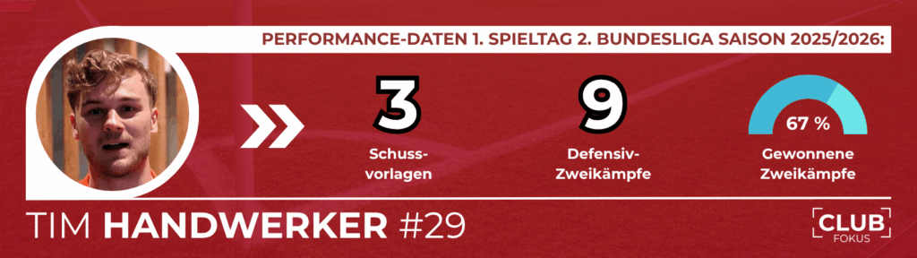 Mittendrin statt nur dabei: Handwerker, der als Linksverteidiger insbesondere mit Ball überzeugen konnte. Nachdem zuvor mit Julian Kania ein weiterer Ex-Cluber das 2:1 erzielt hatte, bereitete Handwerker mit einer Ecke das 3:1 vor. Auch darüber hinaus zeigte der 27-Jährige mit viel Präsenz in der Defensive und Akzenten in der Offensive ein gelungenes Debüt.