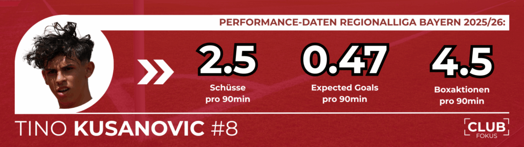 Rechtzeitig vor Turnierbeginn konnte Kusanovic seine kleine Torflaute in der U23 des 1. FC Nürnberg beenden. Nachdem der 17-Jährige in der Vorsaison für die U17 in 23 Einsätzen 27-mal getroffen hatte, blieb er in seinen ersten neun Partien in der Regionalliga Bayern noch ohne Torerfolg. Doch wer seinen hohen Aktionsradius und die Vielzahl an Abschlüssen verfolgte, konnte bereits ahnen, dass es nur eine Frage der Zeit sein würde, bis der Knoten platzt. Tatsächlich traf der umtriebige Rechtsfuß nun in den letzten drei Spielen zweimal für das Team von Trainer Andreas Wolf.