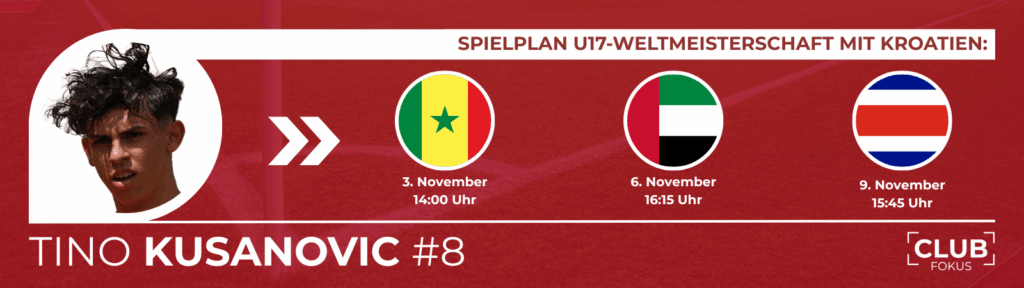Nachdem in der Vergangenheit bereits Vereine wie der FC Bayern München oder der AC Mailand Interesse an Kusanovic gezeigt haben sollen, ist die U17-WM für den Nürnberger Nachwuchsstürmer die ideale Gelegenheit, sein Talent auf internationaler Bühne zu beweisen – und sich für weitere Einsätze bei den Profis zu empfehlen, nachdem er am Ende der vergangenen Saison zum jüngsten Club-Debütanten avancierte.