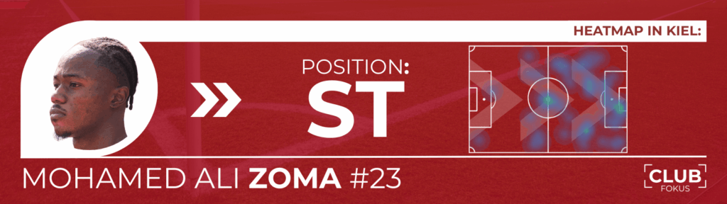 Beim 3:2-Auswärtssieg bei Holstein Kiel brach Klose erstmals mit dieser Herangehensweise. Sowohl Scobel als auch Grimaldi nahmen zunächst auf der Bank Platz. Stattdessen setzte der Trainer mit Mohamed Ali Zoma auf nur einen nominellen Angreifer, während sich Justvan als eine Art hängende Spitze dahinter bewegte. Auf den ersten Blick schien damit ein klassischer Wandspieler im Sturmzentrum zu fehlen.
